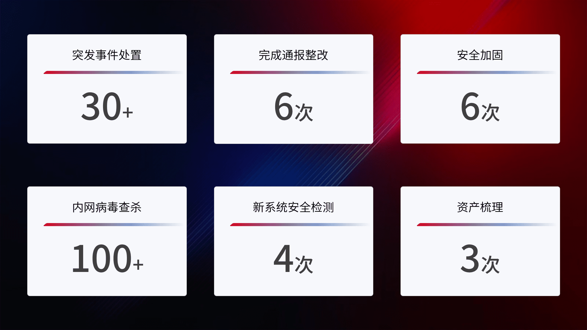 网络安全加固与风险管理:通过技术加固手段,,如加强区域隔离,,缩减攻击内网横向移动的范围;优化现有网络安全管理制度,,,,降低网络威胁暴露面,,减少被黑客攻击的可能性。。